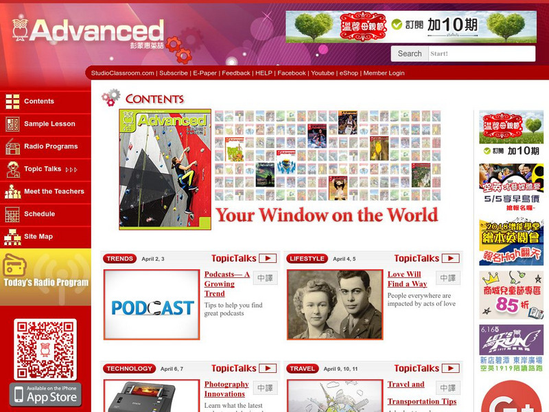 English language learning site for Chinese speakers -- online companion site to a magazine by the same name. Provides summaries and downloadable copies of some of the articles that appear in the printed magazine, along with access to...