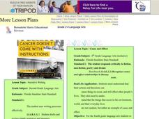 Fourth graders read the book Stellaluna and cite sentences that show cause and effect in the story. In this cause and effect lesson plan, 4th graders also write sentences that show cause and effect in their own lives.