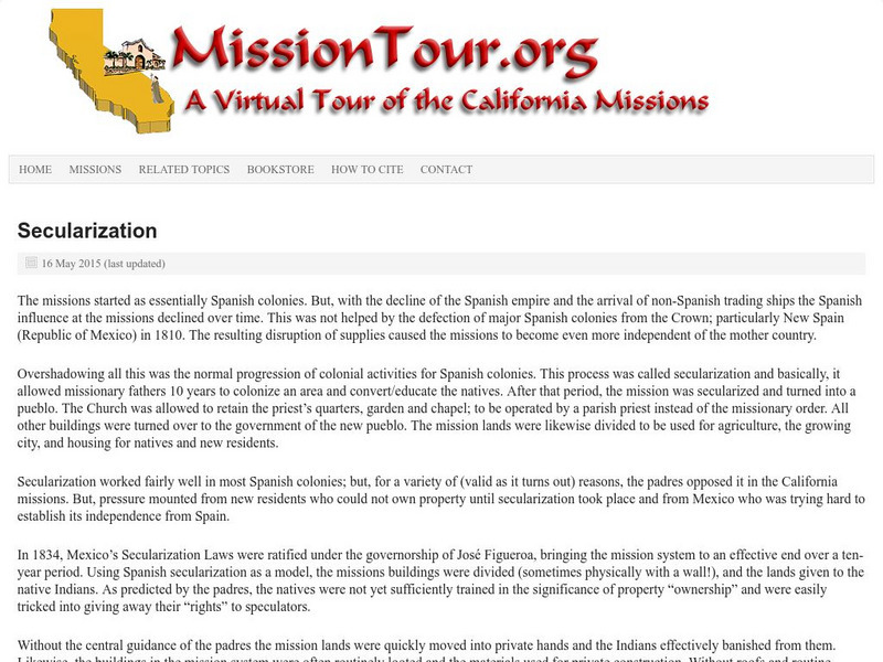 This website tells about the emergence of secularization of Spanish California, which resulted in the decline of the missions.