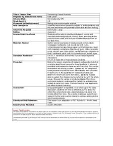 Learners identify attributes of natural and manufactured wood products. In this forest products instructional activity, students perform independent research to find an article about forest use or forest products. They spread out samples...
