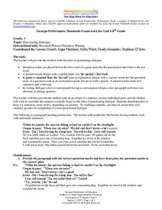Middle schoolers punctuate sentences containing dialogue. In this dialogue lesson plan students solve and create sentence puzzles which are sentences cut into individual parts.