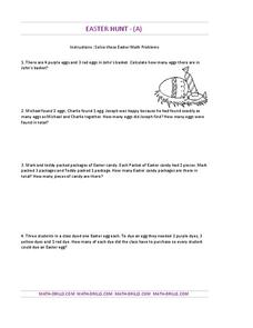 In this Easter math activity, students solve a set of 4 word problems with an Easter theme. An answer key is included on page 2.