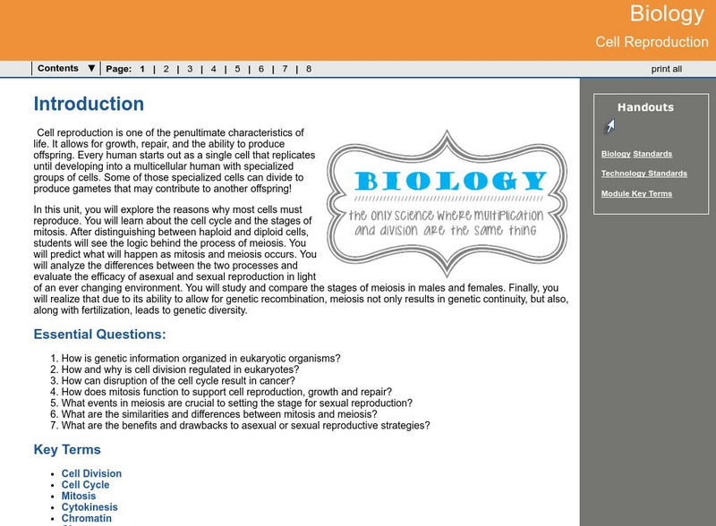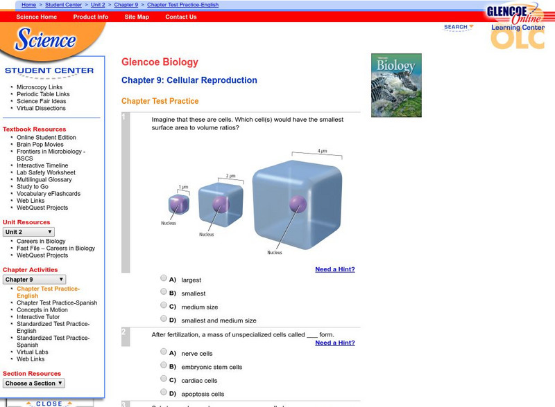 Through informational text, interactive activities, online labs, and video animations, students explore the major concepts of cell reproduction.