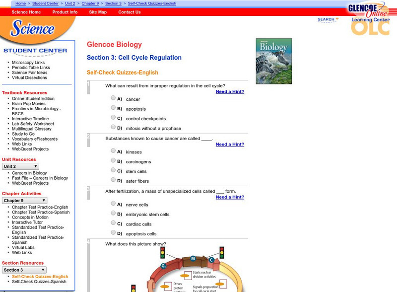 Glencoe Biology: Cell Cycle Regulation: Self Check Quiz