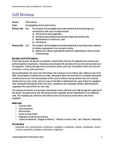 Searching for simple ways to teach mitosis to high schoolers? Using colored chalk and onion root tips, pupils visually demonstrate what they view when looking through the lens of a microscope. There are also various ways to expand the...