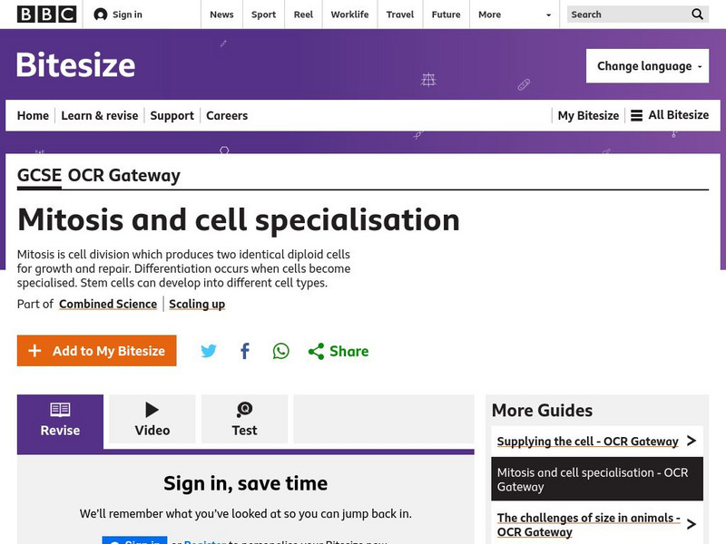 Bbc: Gcse Bitesize: Mitosis and Cell Specialization