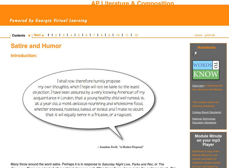 Ga Virtual Learning: Ap Literature & Composition: Satire and Humor