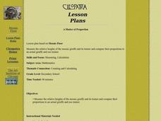 Students measure the relative heights of the mosaic giraffe and its trainer and compare their proportions to an actual giraffe and zoo trainer.