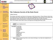 Students explore the rain forest and where they are located. Students examine why the rain forests are important and what is happening to them. They investigate the water cycle and life cycle of a frog. Students build a rain forest in...