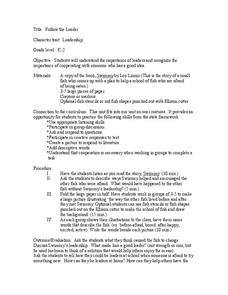 What are the qualities of a good leader? Of a good follower? A reading of Leo Lionni’s Swimmy launches a discussion of leadership and cooperation. Class members brainstorm how they can be leaders at home and how they can encourage others...