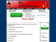 A 10-question interactive online quiz checks comprehension of Jerry Spinelli's lively novel. Several inference-based questions demand more than just fact recollection. Unlimited chances to try missed questions again encourage rereading....
