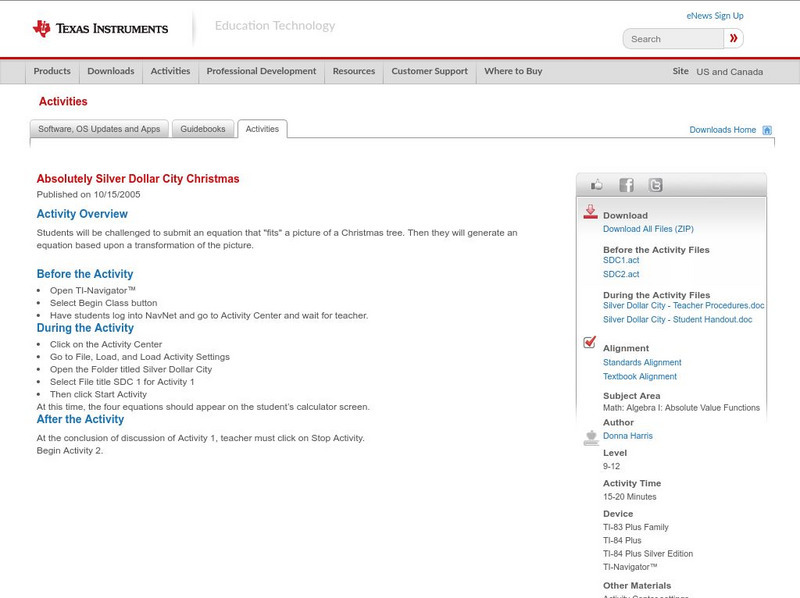 Students will be challenged to submit an equation that "fits" a picture of a Christmas tree. Then they will generate an equation based upon a transformation of the picture.