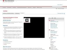 How much can you tell about a circle from its equation? This detailed lesson plan focuses on connecting equations and graphs of circles. Learners use equations to identify x- and y-intercepts, centers, and radii of circles. They also...