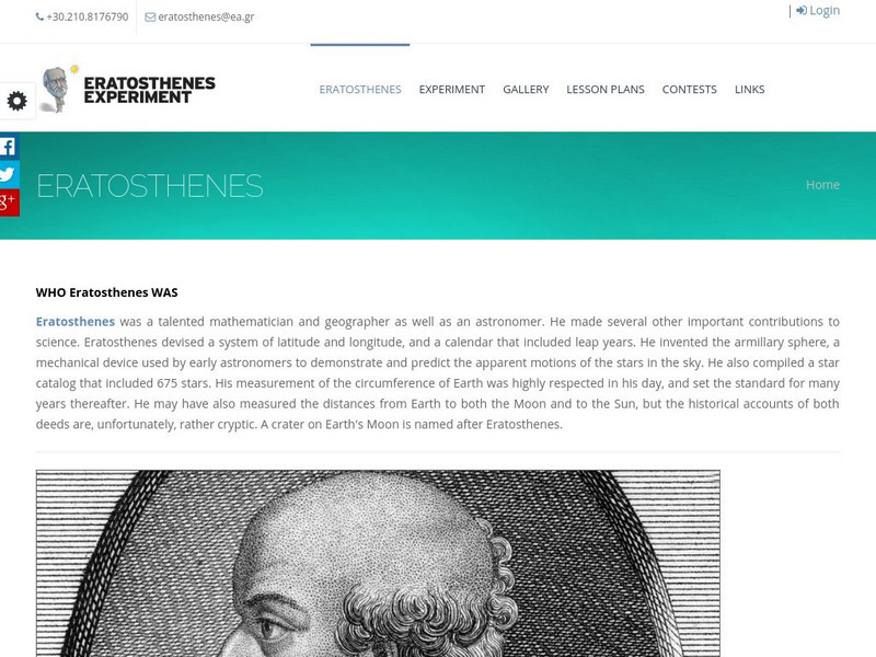 A profile of the ancient Greek mathematician, geographer, and astronomer, Eratosthenes. Looks at his many accomplishments, including measuring the circumference of the Earth and the distance to the Moon and the Sun. Includes links to...