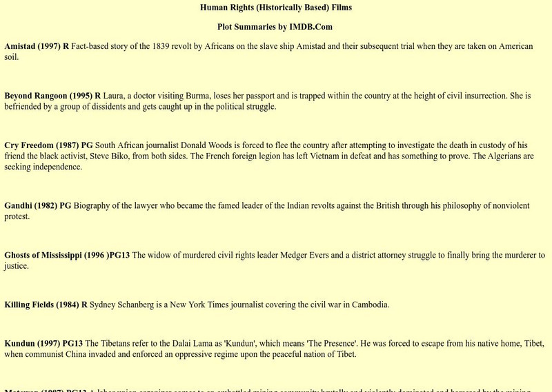This is a list and brief description of historically-based human rights films. Topics include civil rights, slavery, political activism, workers' rights and HIV.