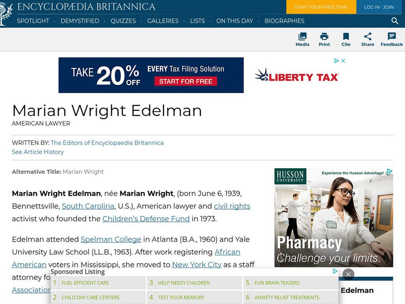 This entry from Encyclopaedia Britannica features Marian Wright Edelman, an American lawyer and civil rights activist who founded the Children's Defense Fund in 1973. This site, rich in detail and breadth of coverage, includes a video...