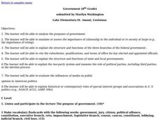 Eighth graders analyze the purposes of government. They examine or assess the importance of citizenship to the individual or to society at large (e.g., the importance of voting). Students explain the structure and functions of the three...