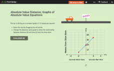 The sole purpose of this interactive is to graph a function representing the distance of a car from a shoe store. Scholars use an interactive to graph such an absolute value function. They then answer a set of challenge questions...