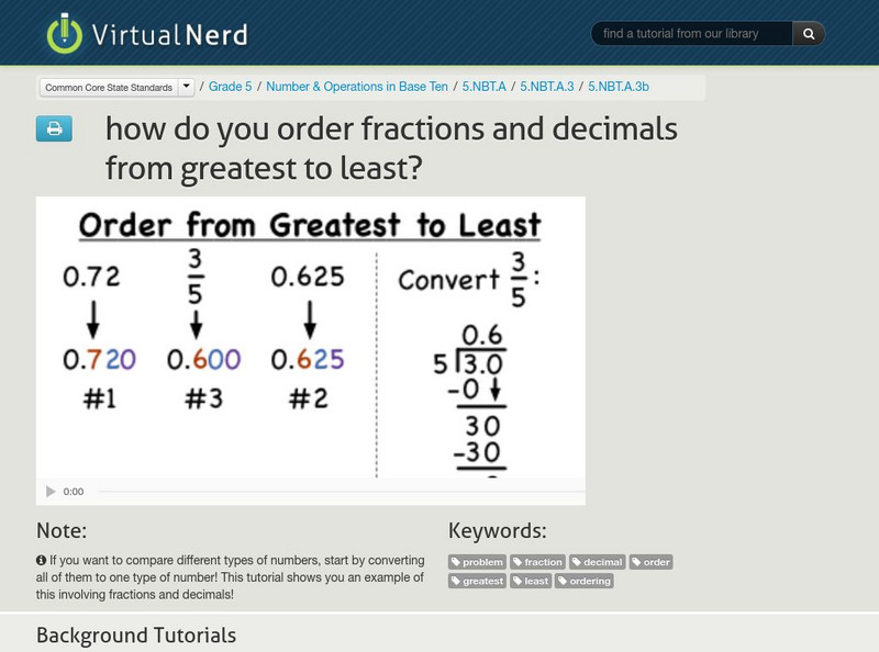 Virtual Nerd: How Do You Order Fractions and Decimals From Greatest to Least?