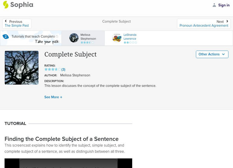 This lesson focuses on how to find the complete subject of a sentence; it defines simple and complete subject with examples, provides sample sentences with both the simple and complete subjects identified, and offers tips for how to find...