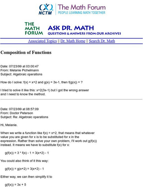 The Math Forum: Ask Dr. Math: Composition of Functions