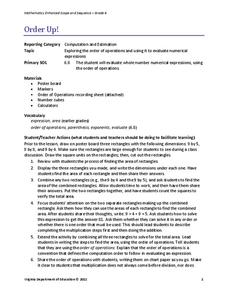 Order in the math class! Scholars learn to evaluate expressions using the order of operations. A game has them rolling number cubes to determine numbers to use when evaluating.