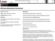 Students conduct research on a variety of African-American inventors. They choose an invention that they feel has had the greatest impact on the world today and write a short summary of the invention, its impact and the inventor's...