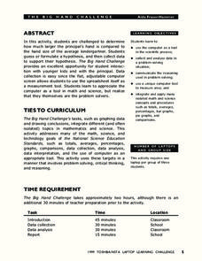 Students utilize a computer spreadsheet to record and analyze data. In this problem solving lesson, students compare their hand size to that of the principal. Students understand standard and nonstandard measurement.