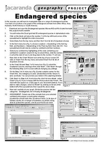In this geography worksheet, students identify how to manipulate data on a range of endangered species. They create a bar graph of endangered animals from Africa, Asia, Australia, North America, or South America. Students use a...