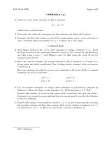 In this math activity, students find two power series solutions to Airy's equation. Then they find the radius of convergence for the solutions.