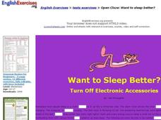 In this online interactive English skills instructional activity, students respond to 20 multiple choice questions that require them to select the appropriate words to complete the idioms. Answers are scored immediately.