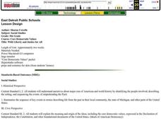 Fifth graders identify and define in their own words the first ten amendments to the Constitution. They are assigned a CDV or amendment from the Bill of Rights and create and present a one-minute skit demonstrating it.