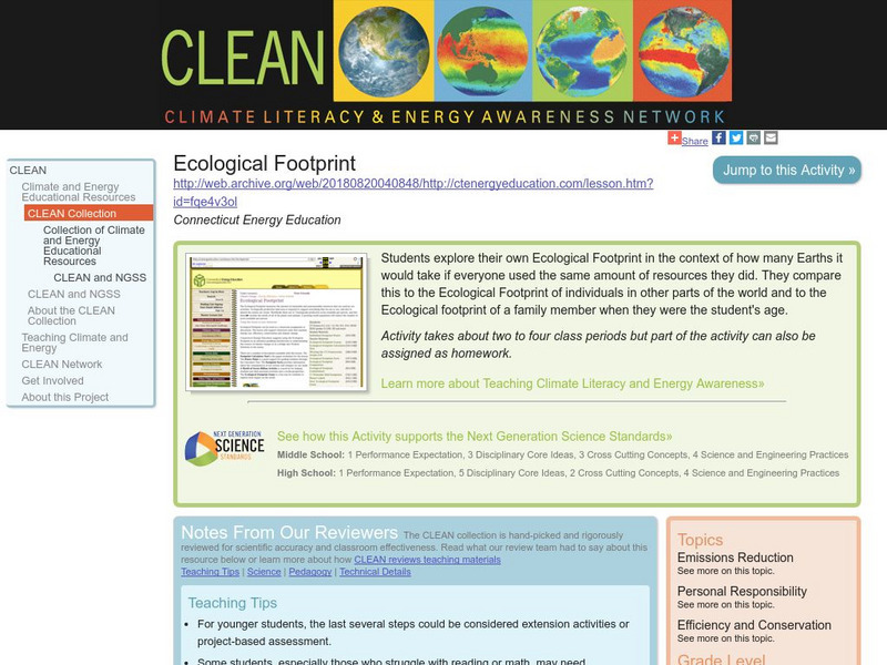 Students explore their own ecological footprint in the context of how many Earths it would take if everyone used the same amount of resources they did. They compare this to the ecological footprint of individuals in other parts of the...