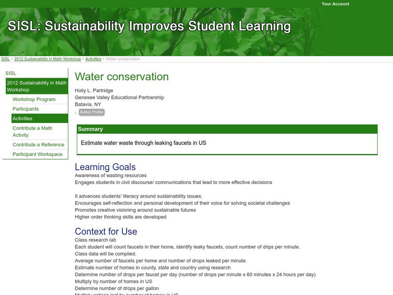 Students increase their sustainability knowledge, and estimate water waste through leaking faucets in US.