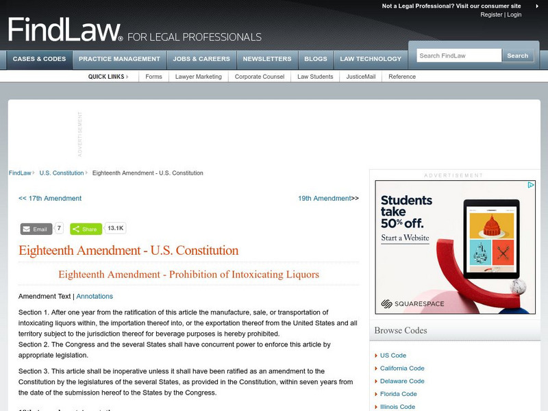 Find Law: u.s. Constitution: Eighteenth Amendment