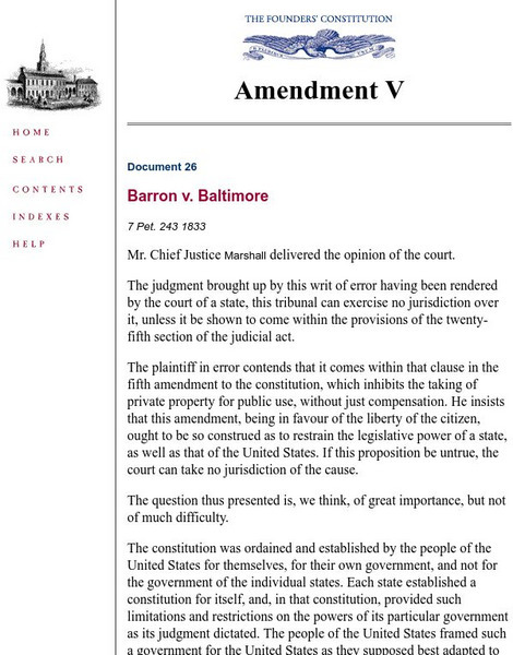 The Founders' Constitution: Amendment V: Barron v. Baltimore
