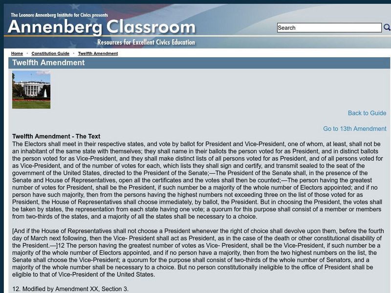 Annenberg Classroom: Twelfth Amendment