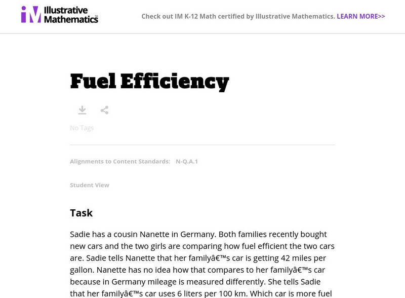 Illustrative Mathematics: N q.a.1: Fuel Efficiency