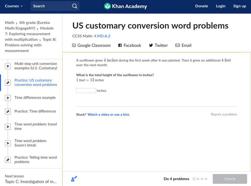 Khan Academy: Us Customary Conversion Word Problems