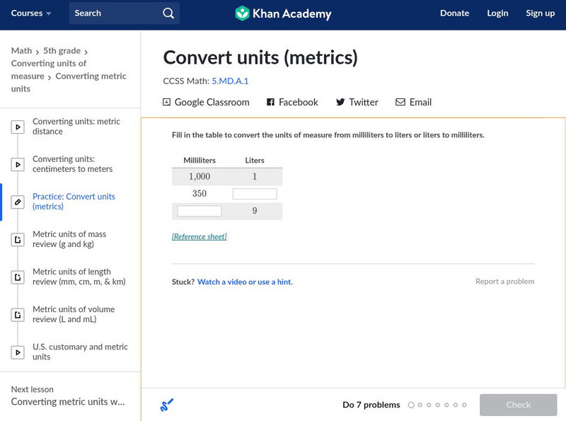 Khan Academy: Convert Units (Metrics)