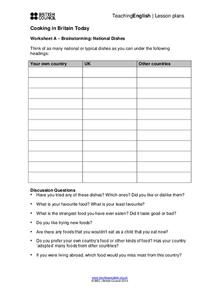 For this British Food worksheet, students read the article, answer true and false questions, complete synonym matching, complete phrase matching, complete a gap fill, answer short answer questions, answer discussion questions, write, and...