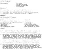 Students explore the density of liquids. In this scientific inquiry lesson plan, students discover the density of water, corn syrup, and cooking oil through an experiment. In addition, students will draw and label pictures of the...