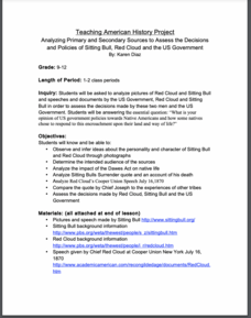 Students examine U.S. policies regarding Native Americans. In this Native American history lesson, students analyze provided primary and secondary sources concerning Red Cloud, Sitting Bull, and the Dawes Act. Students use the provided...