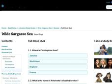 In this online interactive reading comprehension worksheet, students respond to 25 multiple choice questions about Jean Rhys's Wide Sargasso Sea. Students may submit their answers to be scored.