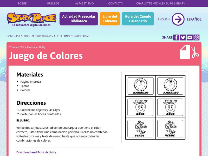 An easy activity from StoryPlace for K-2 students to enjoy. Help students create their own concentration game with colors. This simple activity will provide color review in a familiar interactive way.