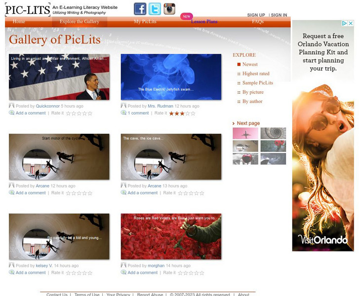 The New York Times provides 140 pictures that will prompt student's creative written expression.