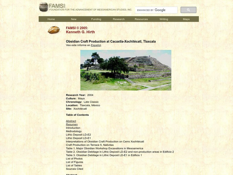 Archaeological excavation at Xochitecatl indicate that it was an area of production for obsidian goods. Site can be viewed in English and Spanish.