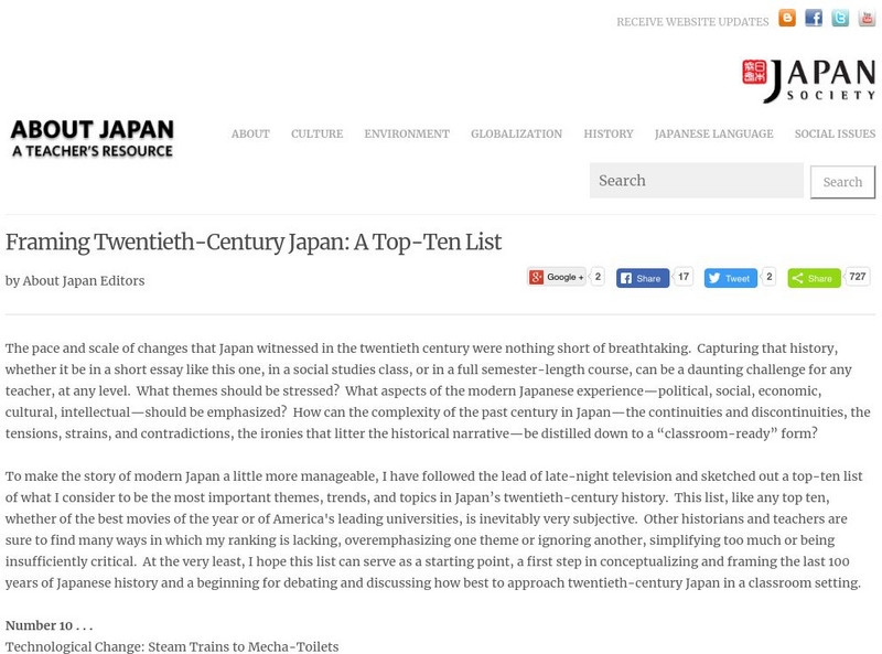 Japan Society: Framing Twentieth Century Japan: A Top Ten List