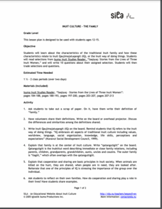 Students examine the attributes of Inuit families. In this cultural practices lesson, students read "Saqiyuq: Stories for the Lives of Three Inuit Women," and respond to 10 comprehension and critical thinking questions about the...