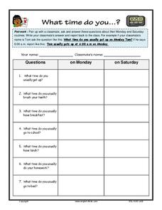 What time do you eat breakfast? Or go to school? Language learners practice crafting and answering questions about their daily routines.